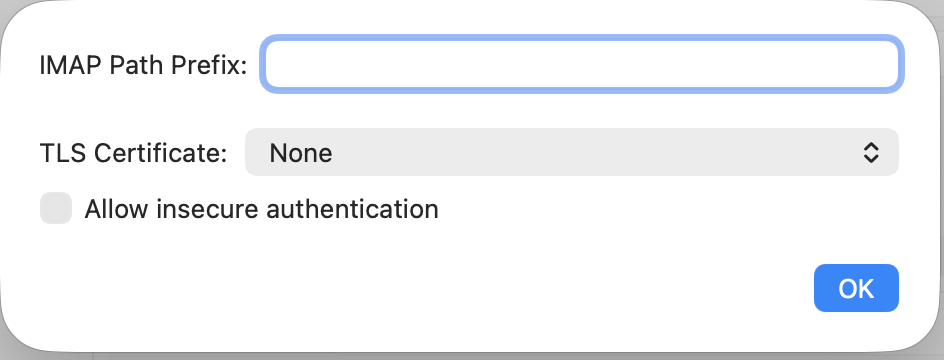 Bij IMAP Path Prefix: verwijder INBOX